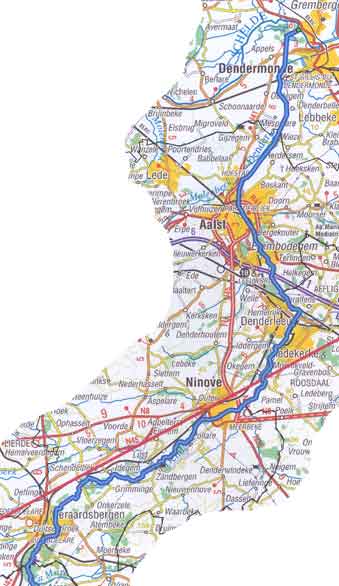Geraardsbergen Vlaanderen binnen, om via de plaatsen Ninove en Aalst bij